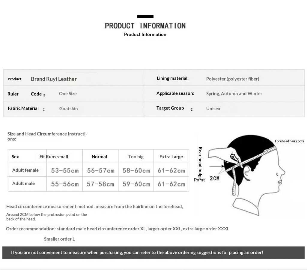 Size: Adjustable (head circumference 55–60 cm)