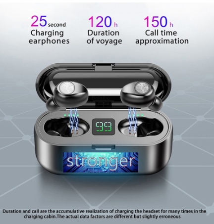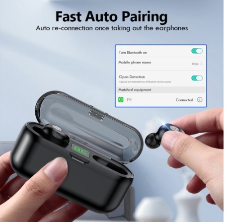 Product Features: 1, Bluetooth V5.0, support most of bluetooth devices and lower power consumption 2, 2000mAh charging case can full charge 2 earphones around 10 times, offer more music time. 3, With waterproof technology, no need to worry about water and sweat anymore 4, 8mms dual drive units, enjoy 9D strong deep bass music sound 5, Popular one button control function, support switch songs, phone call and call voice assiatant.