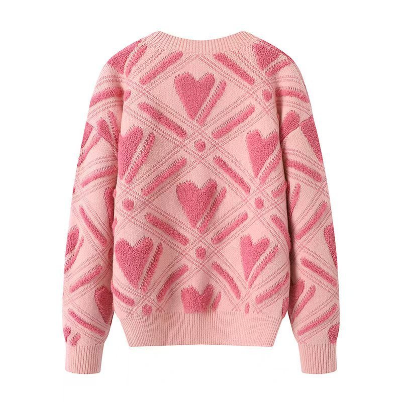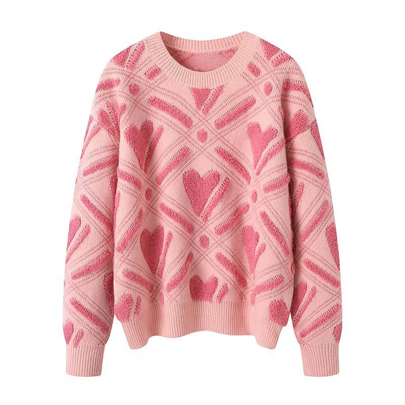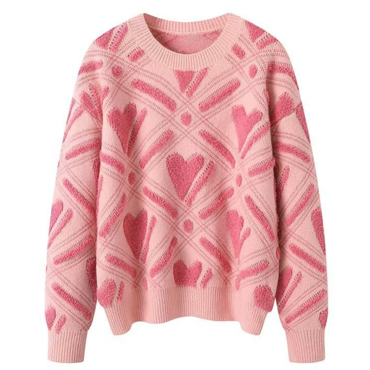 Womens Color-Block Heart-Shape Relaxed-Fit Crew-Neck Sweater - Samanona